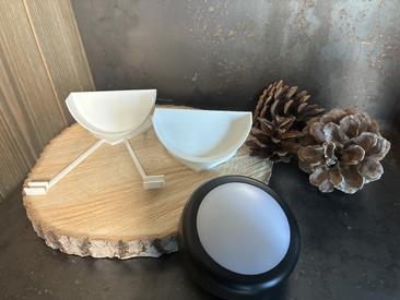 Varmvit LED och RGB-LED placeras i ett särskilt stativ som positionerar ljuset korrekt bakom litofanen. Det säkerställer jämn geomlysning och tydlig framtoning av motivet.