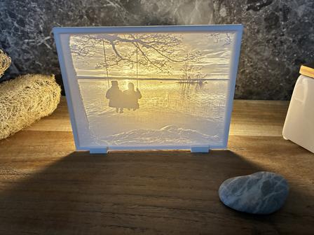 En stilren och klassisk litofan där ljuset och motivet står i fokus. Den printade ramen ger en enkel och harmonisk inramning.